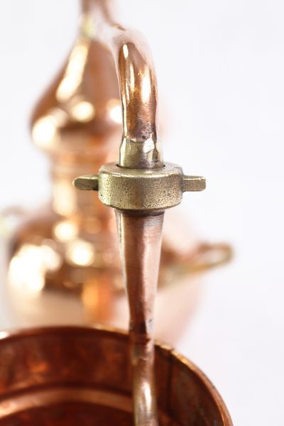 • Klassischer ALEMBIK-Stil mit dreiteiligem, hartverlötetem Brennkessel, geweiteter Verschraubung und traditionell geformtem Geistrohr.