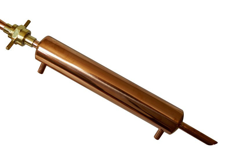 Der zusätzliche Kühler ist ein fein gearbeiteter Liebigkühler aus Kupfer der die Alquitara als Nachkühler hervorragend ergänzt.